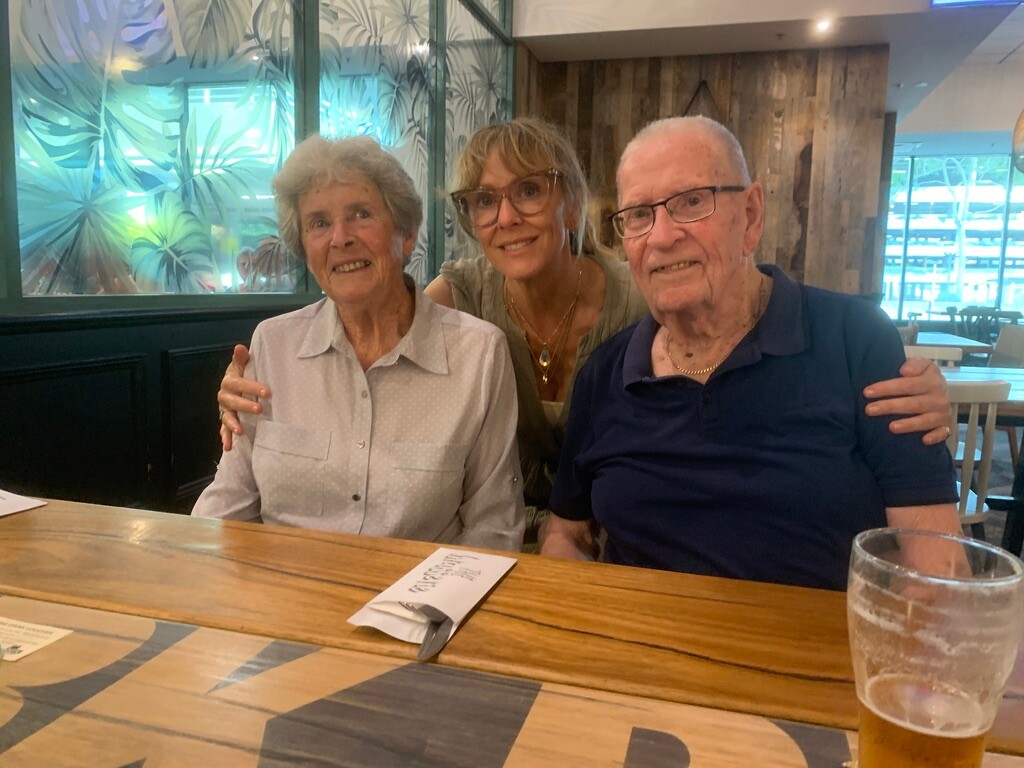 Joan and Roger joined by Lee, their daughter.